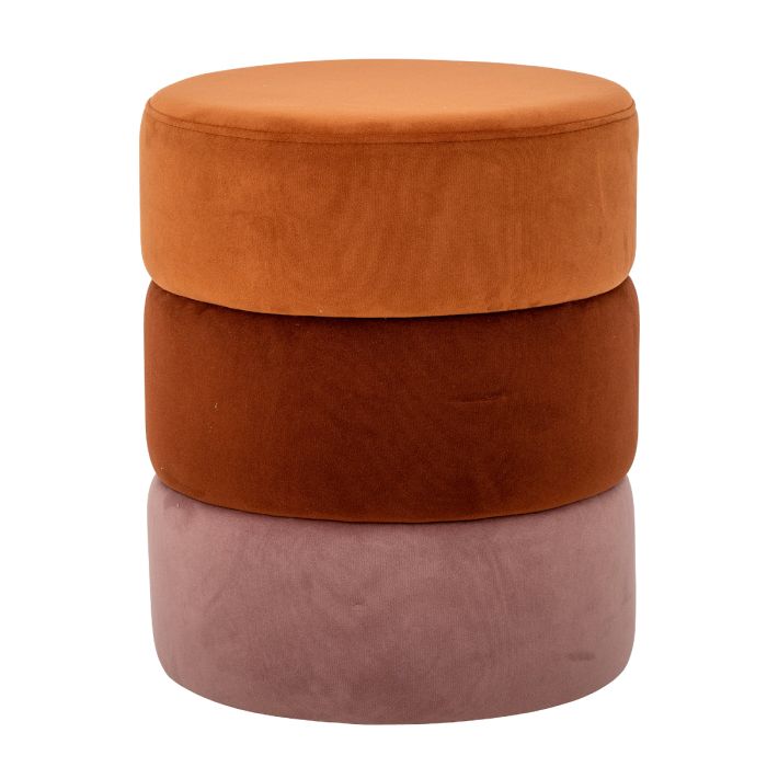 Bilbao Puffen fra Bloomingville er ideel til at skabe en personlig indretning. Den er dækket med velour i tre harmonerende, varme nuancer, der bidrager til en hyggelig atmosfære. Brug den som ekstra siddeplads, fodstøtte, praktisk puf eller som et dekorativt element, der tiltrækker opmærksomhed i rummet.