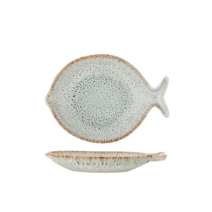Fleur serveringsfadet er fremstillet i stentøj og formet som en fisk.