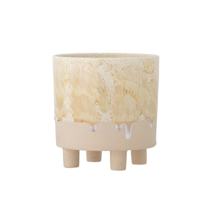 Imoa urtepotteskjuleren er fremstillet i stentøj med en glasur i naturlige, afdæmpede farver og bløde gule toner.