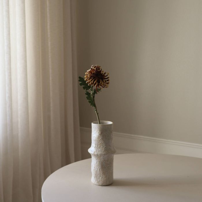 Den viste keramikvase i jordfarver måler 30,5 cm i højden og har en diameter på 10 cm.