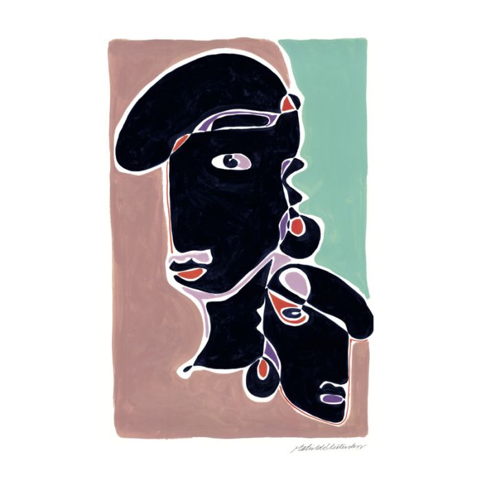 Denne flotte Samsara plakat er designet af Mathilde Vesterskov, hvor inspirationen til den og alle hendes andre værker er hentet fra kubismens tid og nutidens tendenser. Mathilde Vesterskov prøver i en verden af teknologi og digitalt design at fokusere på charmen i håndlavet skævhed og originalitet.