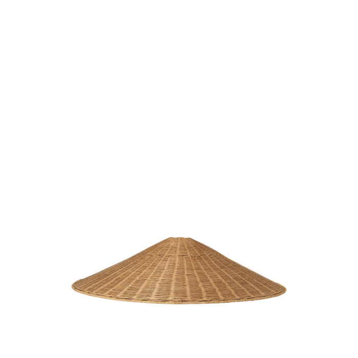Dou lampe i håndflettet af naturlig rattan og lampeskærmen giver et klart lys fra det øverste af lampen og lader samtidig små glimt af lys stråle gennem selve skærmen.