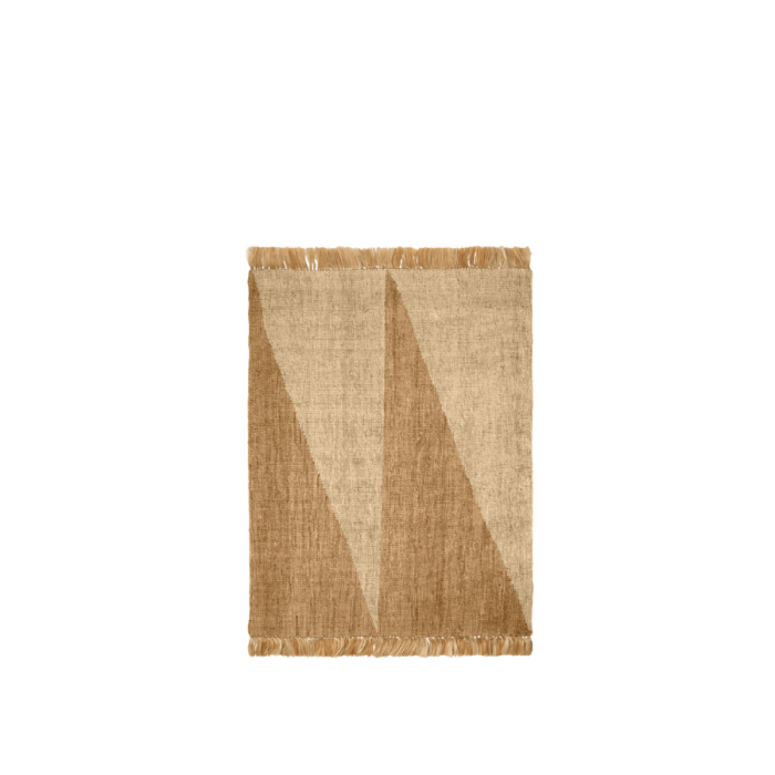 Studie Tæppe er omhyggeligt håndlavet af 100 % naturlig jute af dygtige kunsthåndværkere i Indien ved hjælp af den komplicerede soumak-væveteknik. Det minimalistiske trekantede mønster skabes ved, at hvert garn væves over og under kædetrådene, hvilket resulterer i hævede, reblignende mønstre, der giver dybde og tekstur. Resultatet er en holdbar og visuelt fængslende overflade, hvor hver måtte bliver et unikt kunstværk. Denne teknik kombinerer traditionelt håndværk med moderne design og demonstrerer både præcision og dygtighed.