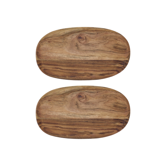 Bring naturens skønhed til dit spisebord med disse bakker i akacietræ. Deres enkle, elegante design gør dem ideelle til både servering og som unikke tallerkener til en rustik spiseoplevelse. Den naturlige træstruktur tilføjer varme og charme, og inviterer til at nyde hvert måltid med stil.