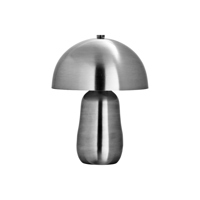 Denne elegante bordlampe i børstet sølv kombinerer bløde linjer med et håndlavet, skulpturelt design, der tilføjer både karakter og raffinement til dit hjem. Lampens kuppelformede top og hvide inderskærm skaber et varmt, blødt lys, der spreder sig smukt i rummet. Perfekt til natbordet, skrivebordet eller som et stemningsfuldt element i stuen.