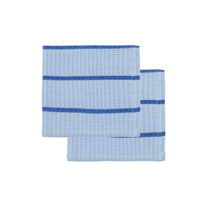 Kludene er vævet af blød bomuld i et elegant tofarvet mønster med lyseblå og mørkeblå striber. De er slidstærke, har god sugeevne og er lette at vaske, hvilket gør dem ideelle til hverdagsbrug.