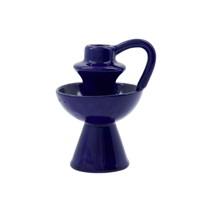 Tilføj et kunstnerisk strejf til din boligindretning med denne håndlavede lysestage i stentøj. Den slående blå glasur skaber et levende fokuspunkt i ethvert rum. Ideel til koniske stearinlys, denne lysestage opfylder ikke kun et praktisk behov, men beriger også din borddækning med personlighed. I perfekt harmoni med HDDiva-serien, tilfører den et stænk af farve og liv til dit hjem. – Håndlavet stentøjsdesign.