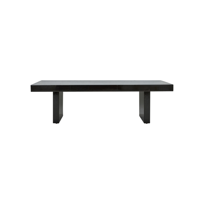 Bordets håndlavede design kombinerer robusthed med et eksklusivt look, hvor de tværgående ben giver stabilitet og karakter. Med sit moderne og sofistikerede udtryk bliver det et ægte statement i stuen, som inviterer til samtale og beundring.