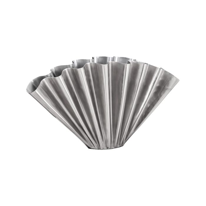 Flood vasen er udført i metal med en eksklusiv finish i børstet sølv, der tilfører hjemmet et moderne og karakterfuldt udtryk. De foldede sider giver vasen et dynamisk præg, som skaber liv og elegance i rummet. Brug den til at samle dine yndlingsbuketter, eller lad den stå alene som et kunstværk på spisebordet, i vindueskarmen eller på en hylde. Uanset placering tilfører Flood Vase et raffineret fokuspunkt og et strejf af ekstra spil til din indretning.