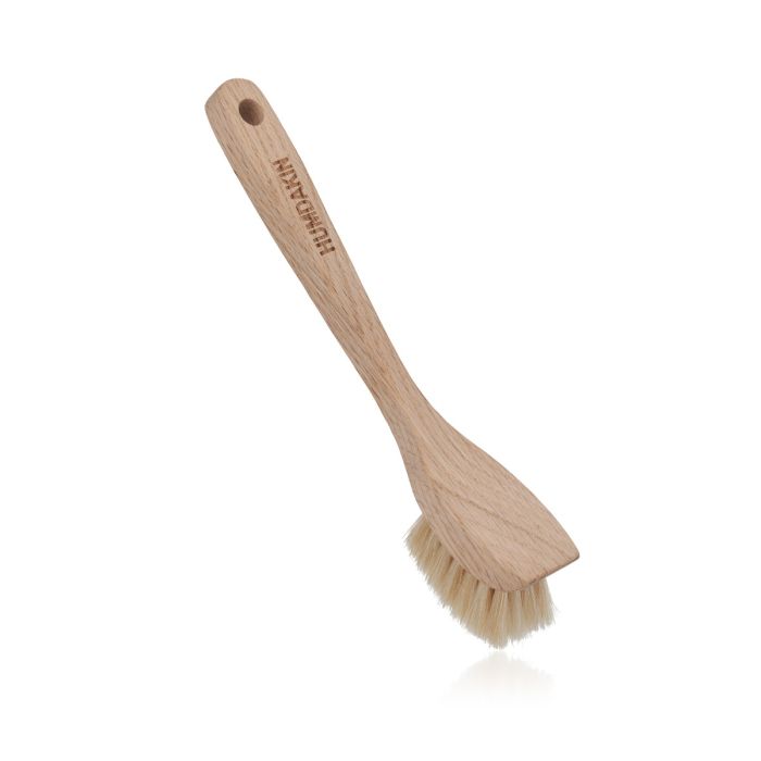 Denne elegante børste er fremstillet af robust mørkt egetræ og udstyret med 100% plantebaserede tampico‑fibre, som giver en mellem hård og yderst holdbar børste, der er perfekt til både hverdagsopvask og mere grundig rengøring af gryder og pander. De naturlige fibre holder formen flot og giver en let polerende effekt, der hjælper med at løsne fastsiddende madrester.
