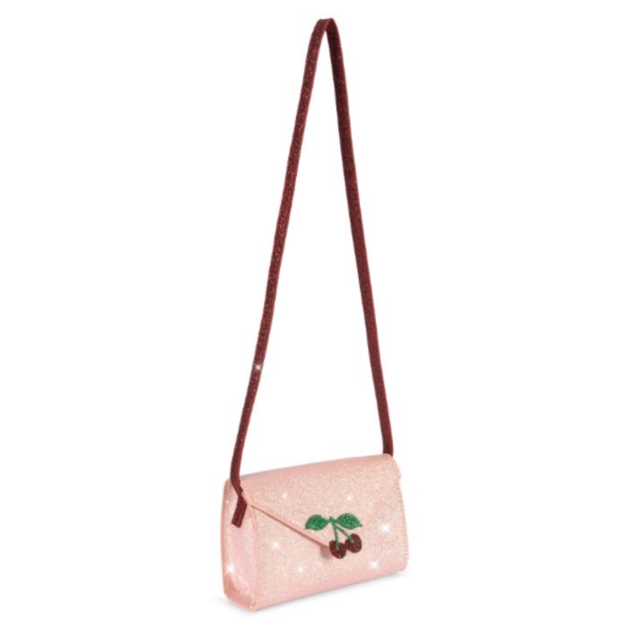Love Letter tasken er en fin crossbody taske formet som en lille kuvert, designet med glitrende overflade og praktisk trykknaplukning foran.