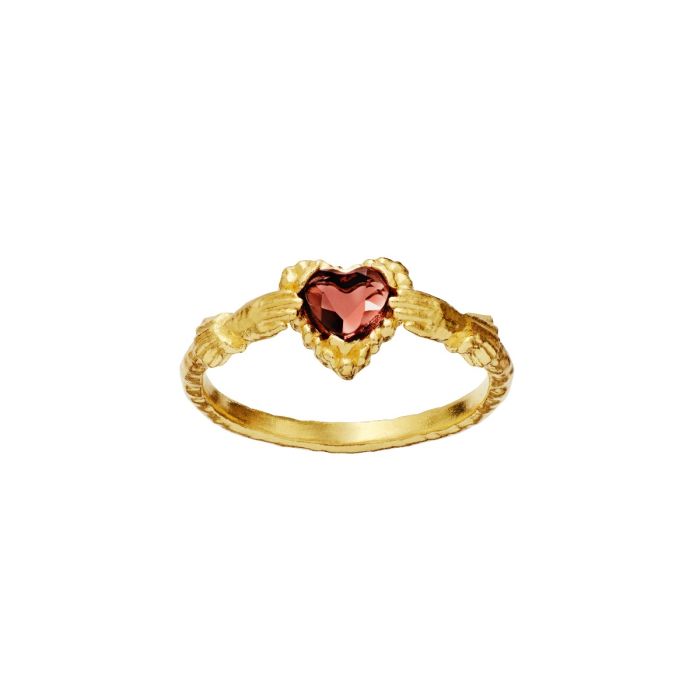 Materiale: Genanvendt Sterling sølv belagt med 18K guld, pink granat