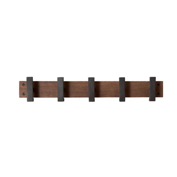 Knagerækken er behandlet med en mørk røget olie, der giver et industrielt udtryk, og passer perfekt i entreen, garderoben eller på badeværelset, hvor pladsen er trang.