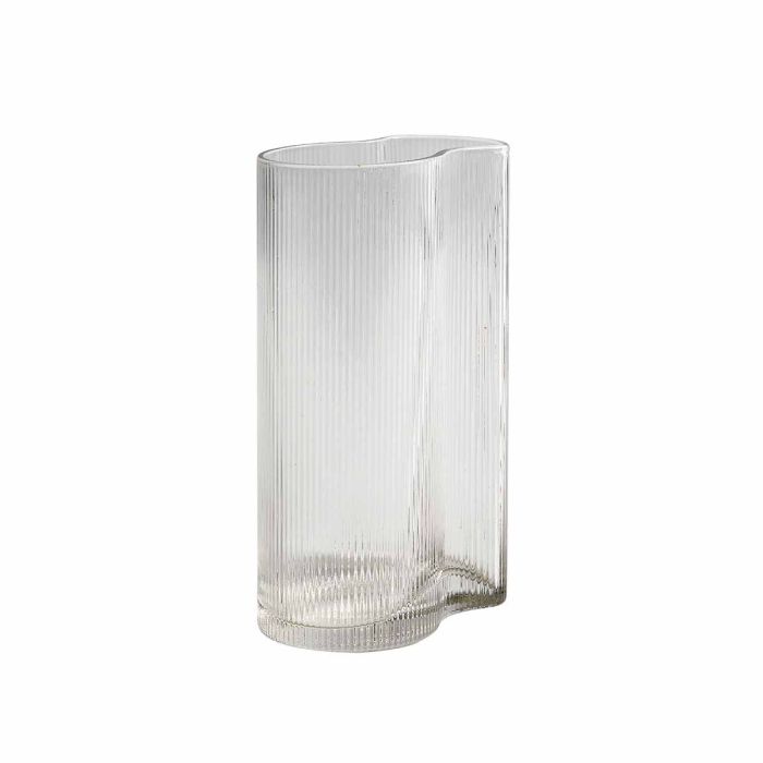 Med sin unikke form og riflet overflade fungerer karaflen både som elegant vandkaraffel og som dekorativ vase til blomster.