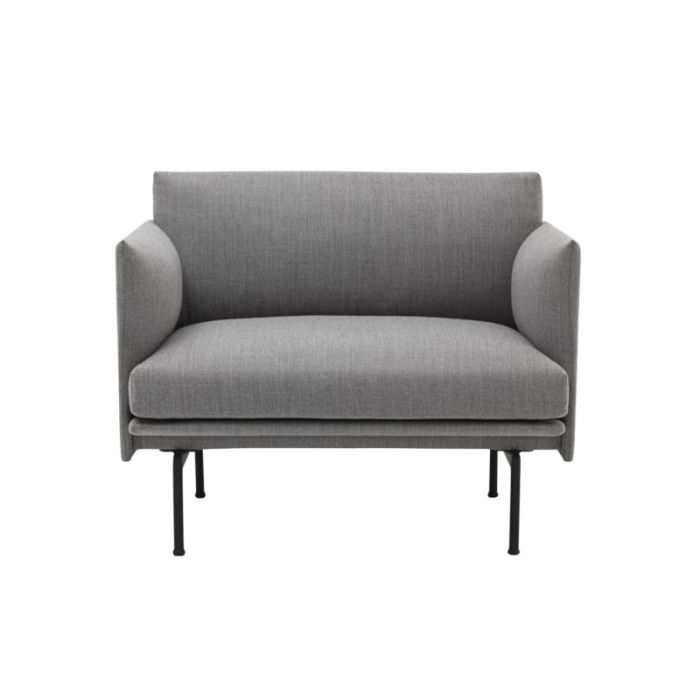 Muuto Outline lænestol med skønt stofgrå polstring.