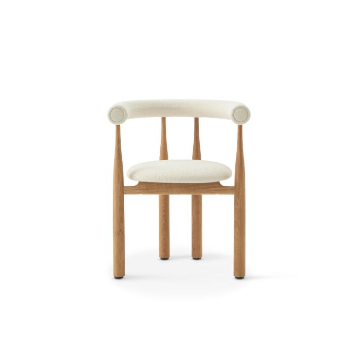 De kurvede ben og det nye voluminøse ryglæn skaber et balanceret udtryk med skulpturel tilstedeværelse. Den bløde polstring giver en ekstra følelse af støtte og indbyder til afslappede stunder.Perfekt til lange middage, hyggelige samtaler eller rolige øjeblikke alene.