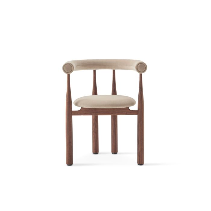 De kurvede ben og det nye voluminøse ryglæn skaber et balanceret udtryk med skulpturel tilstedeværelse. Den bløde polstring giver en ekstra følelse af støtte og indbyder til afslappede stunder.Perfekt til lange middage, hyggelige samtaler eller rolige øjeblikke alene.