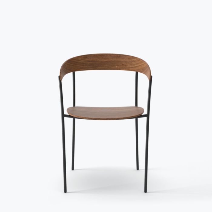 Pulverlakeret stålramme med sæde og ryg i støbt krydsfiner.