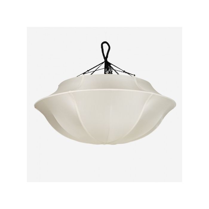 Populær lampe fra Indochina-kollektionen. Umbrella er en smuk loftslampe i silke med sorte bomuldsbånd.