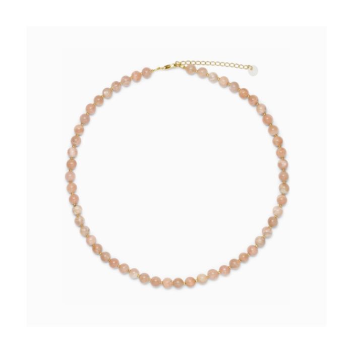 Sunstone forbindes med solens strålende energi og siges at bringe varme og vitalitet til både krop og sind. Halskæden er håndlavet med omhu og finesse og er mere end bare et smykke, det er en symbolsk forbindelse til indre styrke og glæde.