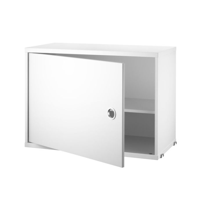Med dette skab tilfører du ekstra opbevaringsplads til dit String system. Skabets låge kan monteres på både højre og venstre side, så du kan tilpasse det til dit String reolsystems placering. Inde i skabet er der en justerbar hylde, hvorpå du kan pladser det, som du ikke ønsker skal stå fremme.