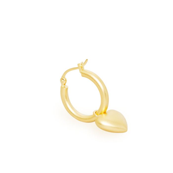 Hjertet er tilføjet på en sandblæst buttet creol, men du har mulighed for at skubbe hjertet af, så du kan bære bøjlen alene. Vær modig og bære øreringen dobbelt op.