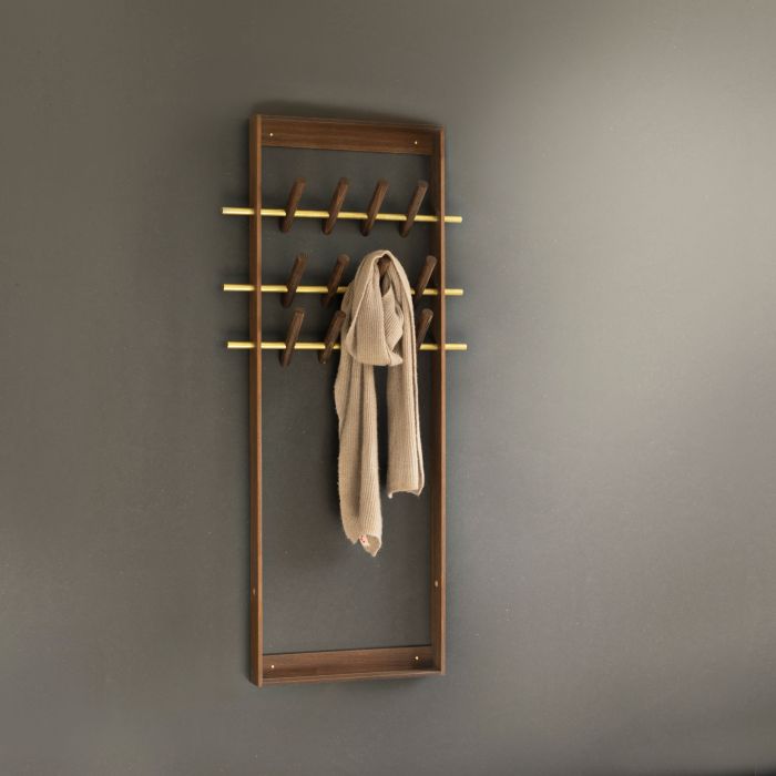 Knagerækkens ramme er lavet i røget eg. På knagerækken er der tre rækker som er justerbare og kan flyttes op og ned alt efter behov.