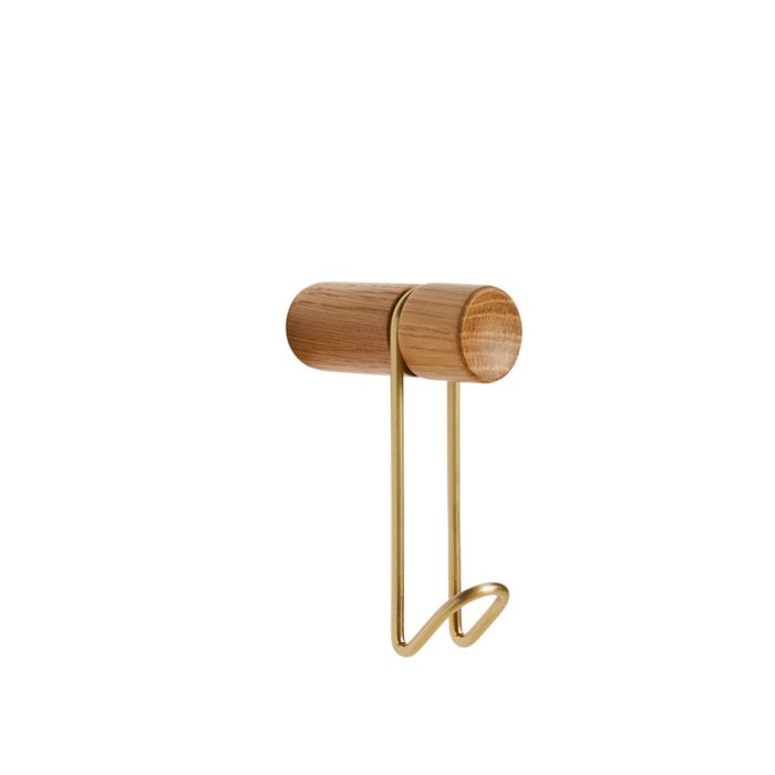 Around vægknage der kombinerer interessant æstetik og funktionalitet. Den konkave træoverflade bringer en skulpturel detalje til designet, mens den tilføjer varme og balance til den robuste metalkrog.